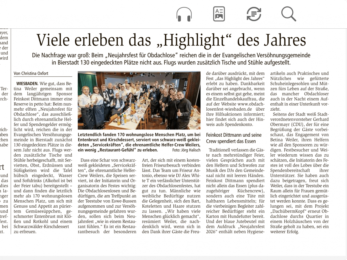 Zum 11. Mal durften wir unser Neujahrsfest für obdachlose und bedürftige Menschen feiern und mit 175 Gästen so viele wie nie zuvor. Das zeigt schmerzlich, wie sehr Armut wächst, und zugleich, wie dringend dieses Fest gebraucht wird.